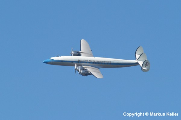 Bis zur letzten Minute hofften die Veranstalter auf die Genehmigung des Regierungspräsidium Freiburg für eine Überflugdemonstration der Breitling Superconstellation aus der Schweiz. Schließlich kamen am Samstagnachmittag die Zuschauer, die ein Fernglas oder ein leistungsstarkes Teleobjektiv dabei hatten, in den Genuss den wohl schönsten Airliner aller Zeiten - wenn auch in großer Höhe - zu bewundern.