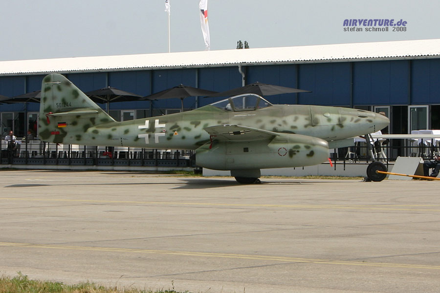 Auch beim zweiten Auftritt nach der glorreichen Premiere vor zwei Jahren war die Messerschmitt 262 D-IMTT des EADS Heritage Flight für viele Besucher der Star unter den Klassikern. Leider blieb die Maschine an einigen Tagen wegen Triebwerksproblemen am Boden. Sicherheit geht bei diesen wertvollen Maschinen natürlich auf jeden Fall vor! |
