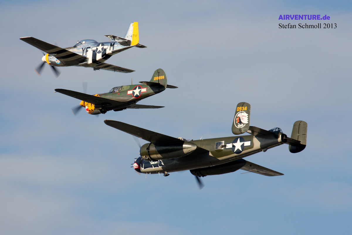 Egal ob Morgens um 7:30 oder Abends nach der Show: Mustangs waren oft in der Luft über Oshkosh. Während der täglichen Airshow fegten nicht selten acht oder zehn Exemplare gleichzeitig über die Bahn. |