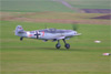 Maßstab 1:3 In der Pause zwischen den beiden Flugvorführungen tauchte plötzlich eine zweite 109 auf. Kaum vom Original zu unterscheiden wurde ein ferngesteuertes Modell vorgeflogen. Unter dem Bauch hängt keine Bombe sondern ein Abwurftank.