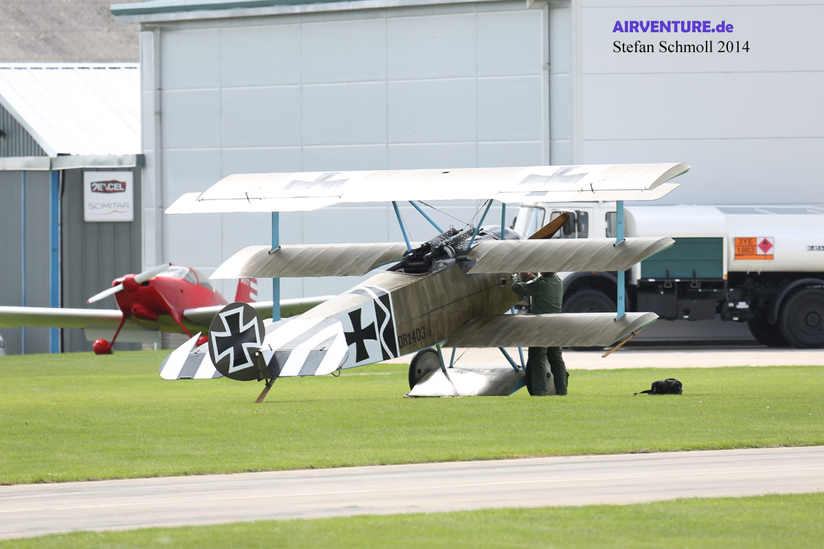 Ebenfalls zum Great War Display Team gehört dieser Nachbau der allerersten Sopwith Triplane N500. Der geplante Luftkampf zwischen den britischen und deutschen Nachbauten sollte zu den Höhepunkten der Airshow gehören ? aber bei dem Wind war einfach nichts zu machen.